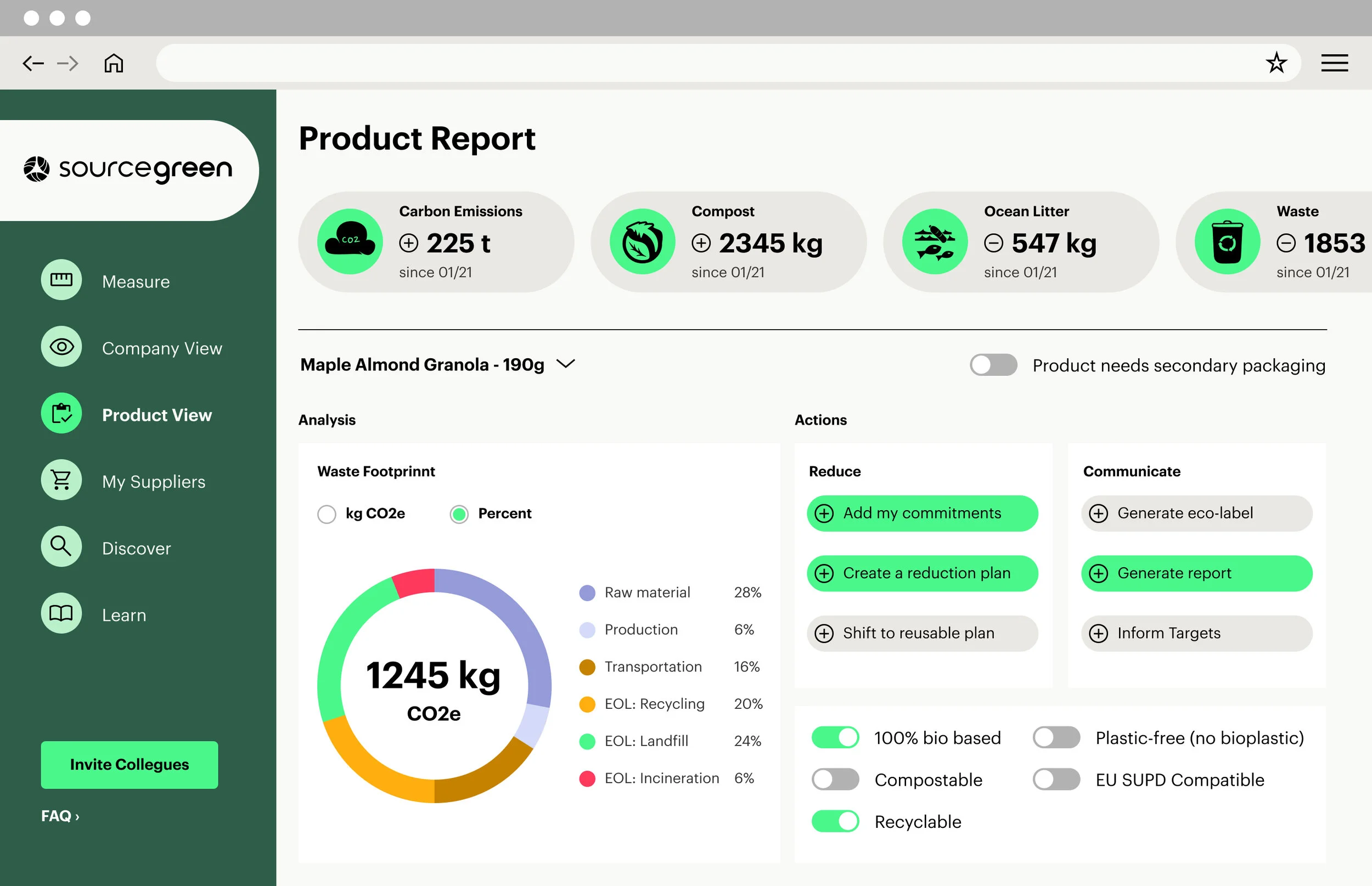 We streamlined the Source Green emblem while incorporating aspects of the company’s focus on the planet-forward cycle of biodegradable materials. The rest of the brand was fleshed out with a color palette of pastels and bright greens suggesting Source Green’s sustainable cornerstone while also demonstrating the company’s emphasis on technology.